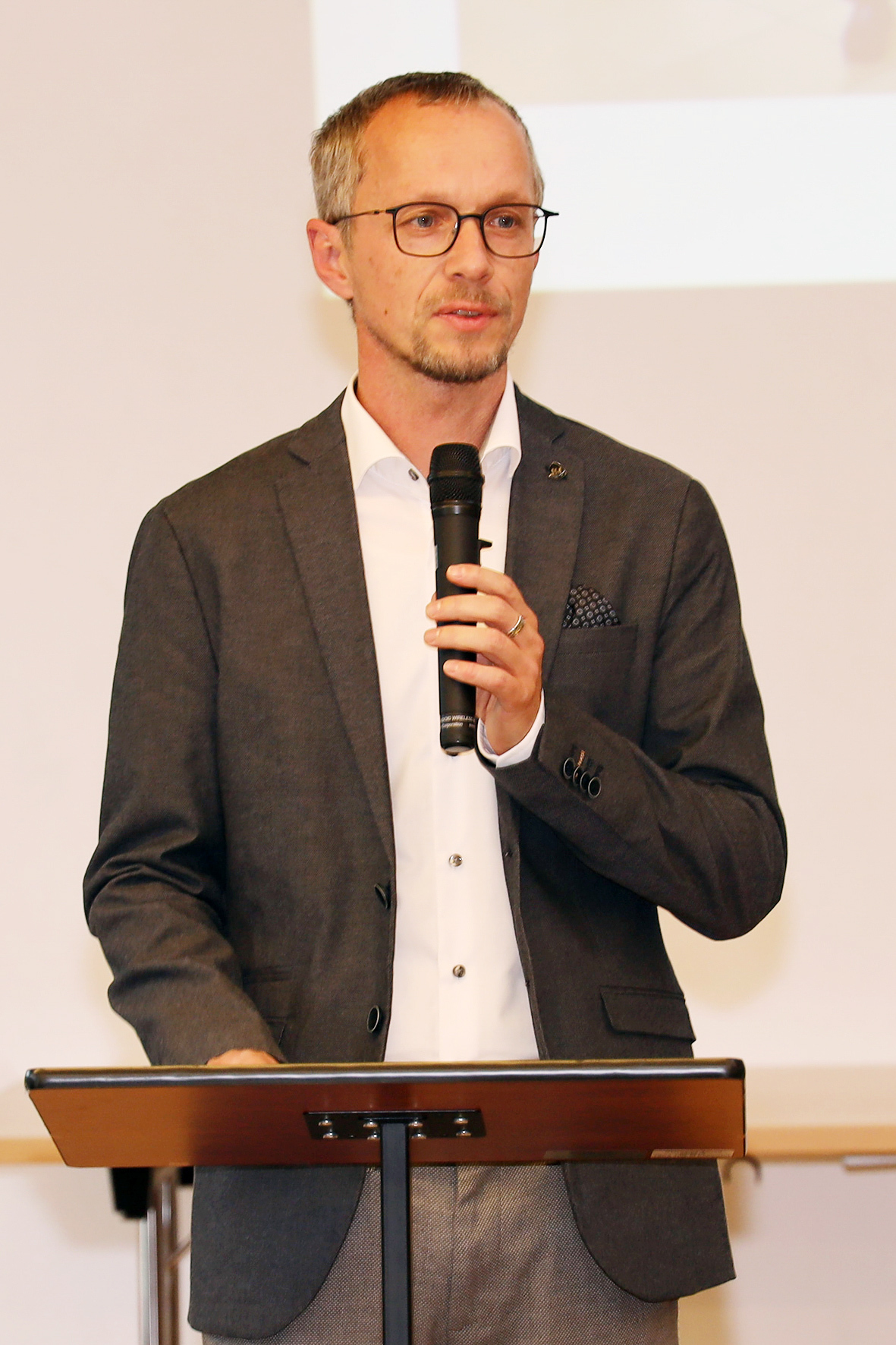 Dechant Marek Michalowski lud zu Beginn der Veranstaltung die Teilnehmenden zum gemeinsamen Gebet und Singen ein. Er motivierte mit seinem Leitwort „Mit Gottes Geist mutig den Wandel gestalten“ und betonte, dass Mut, Vertrauen und Offenheit wichtige Haltungen sind, um den Zukunftsweg mitzugehen. Er berief sich dabei auf zwei ausgewählte Bibelstellen. In Jesaja 43,19 heißt es „Ich mache einen Weg in der Wüste und Flüsse in der Einöde“. Der Dechant ermutigte die Anwesenden den Wandel als Zeichen unserer Zeit anzuerkennen und darauf zu vertrauen, dass etwas Neues und Gutes entstehen könne. Andererseits sprach er mit der Bibelstelle Matthäus 5,14 - 16 „Ihr seid das Licht der Welt.“ den einzelnen Pfarrgemeinden ihre jeweilige Bedeutsamkeit zu. Jede und jeder spiele in der Gemeinde eine wichtige Rolle und mache durch das eigene Wirken Gottes Liebe sichtbar, so der Dechant.