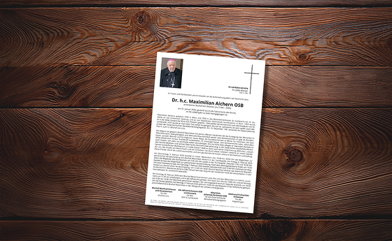 Parte und Einladung zur Teilnahme an den Trauerfeierlichkeiten für Altbischof Maximilian Aichern. Das Requiem wird am Samstag, 7. Februar 2026 um 12 Uhr im Mariendom gefeiert. Beigesetzt wird Maximilian Aichern auf eigenen Wunsch am Montag, 9. Februar 2026 in der Äbtegruft des Stiftes St. Lambrecht.