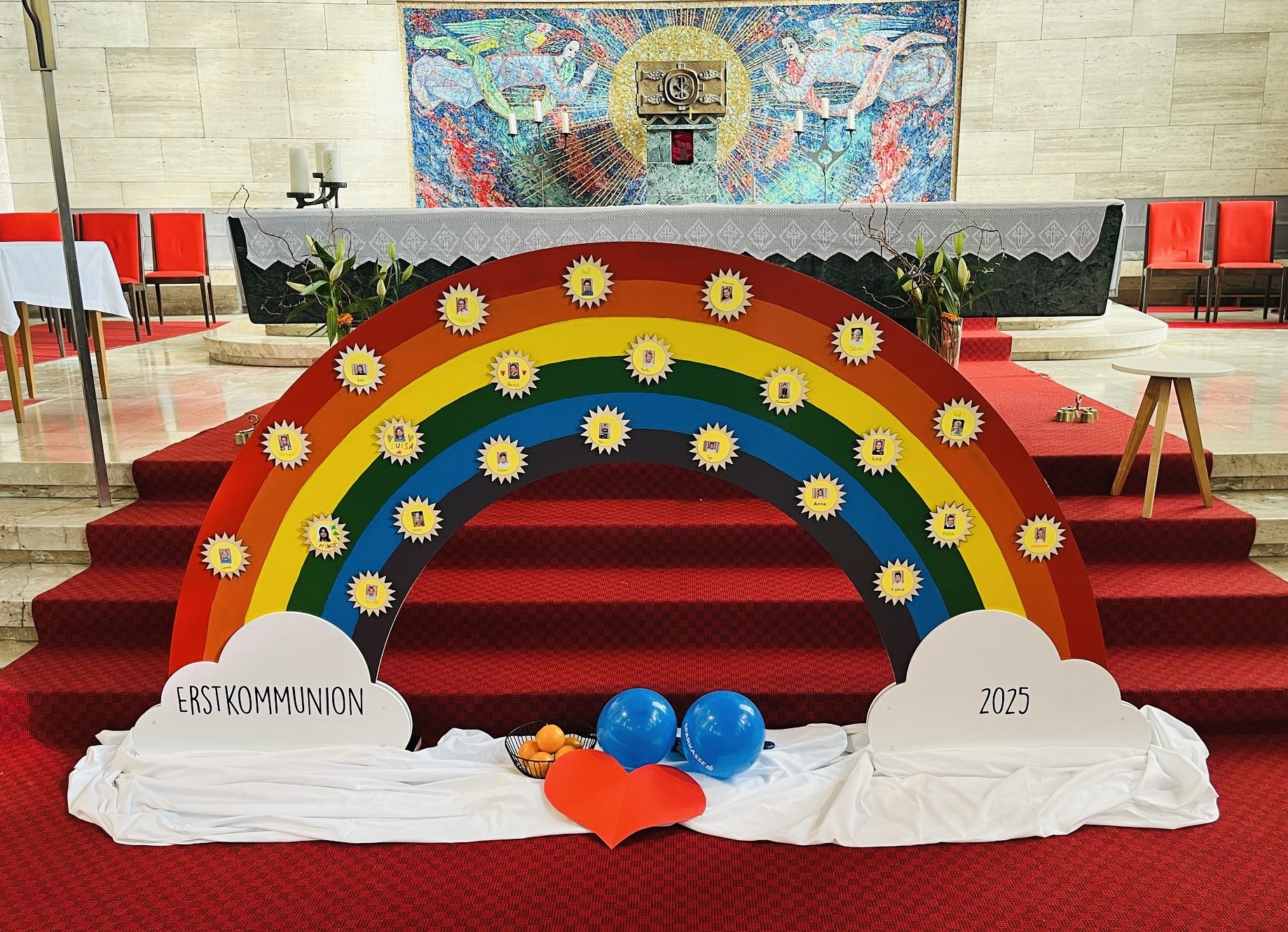 „Gottes Liebe ist wie ein bunter Regenbogen“- unter diesem Thema bereiten sich 23 Kinder aus unserer Gemeinde auf ihre Erstkommunion vor. Das Symbol unserer heurigen Erstkommunionsfeier ist der Regenbogen.