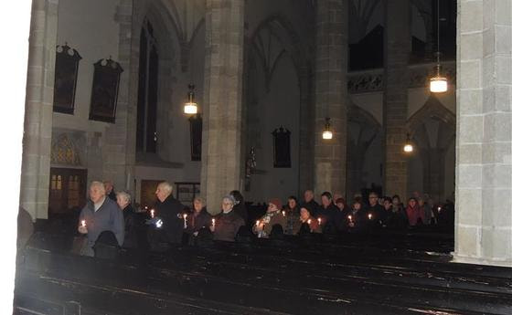 In den Altarraum der Eferdinger Stadtpfarrkirche - in stimmungsvolles Abendlicht getaucht - lud das katholische Bildungswerk Eferding am Sonntag, 12. März 2017 zu einer Lesung mit Musik.