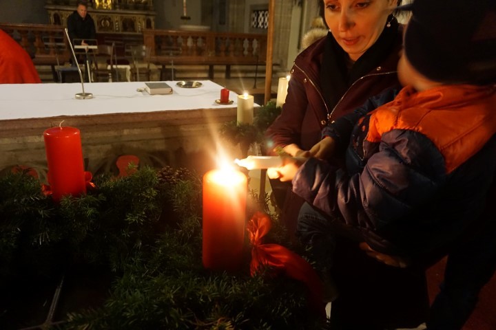 Mit dem Segnen der Adventkränze, dem gemeinsamen Vater unser und dem Schlusssegen, verbunden mit dem Wunsch der Gottesdienstleiterin für eine lichtvolle Adventszeit, endet die stimmungsvolle Feier in der Kirche.