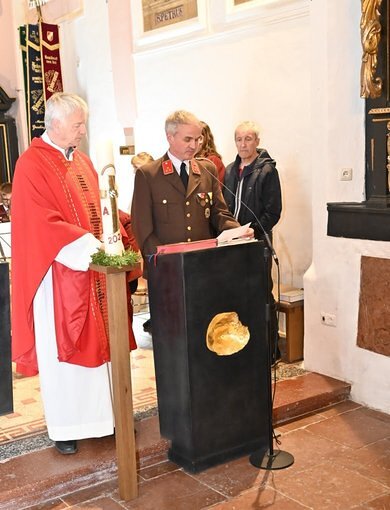 Es freut uns, dass sie das Andenken an den Hl. Florian und die Märtyrer von Lorch so hoch halten. Diese starben aus Liebe zu den Menschen und trotzten der Verfolgung. „Wovor hast du Angst?“ stellte Pf. Strasser die Frage nach einem Wort beim Toreingang der kleinen Pfarrkirche St. Radegund.