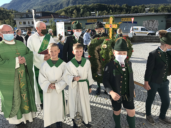 Pfarrer Franz Peter Handlechner und Diakon Alois feierten mit der Pfarrgemeinde Pfandl das Erntedankfest.