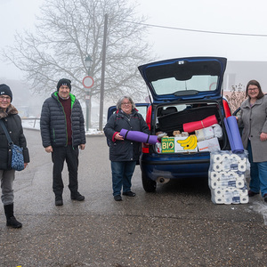 Das Auto wurde fast zu klein, als Frau Haunold von der Caritas Linz die gesammelten Sachen für das Helpmobil abholte.