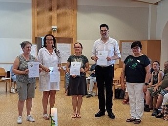 Am 29.06. trafen sich die Teilnehmer:innen zum letzten Modul der Seelsorgeteam-Einführung. Feierlich wurden am Ende allen Teilnehmer:innen die Zertifikate verliehen.