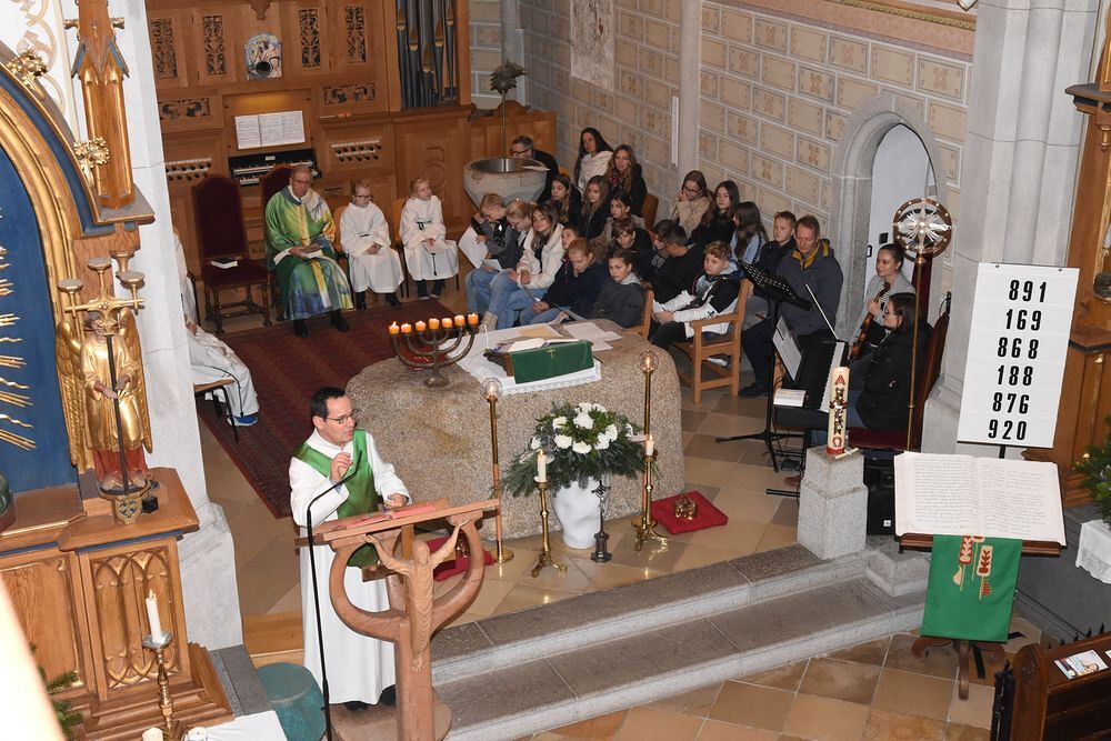 Neben der liturgischen Leitung durch Kurat Anton Ilk und unserem Seelsorger Helmut Eder, den Minis und Musikant*innen, nahmen zur Freude aller auch viele Schüler*innen der 2b Klasse des Stiftsgymnasiums Wilhering mit ihrem Klassenvorstand, Frau Prof. Pfitscher, im Altarraum Platz, um den Gottesdienst mitzugestalten. Auch die Direktorin des Gymnasiums, Frau Prof. Simbrunner, feierte den Gottesdienst mit.