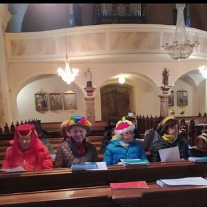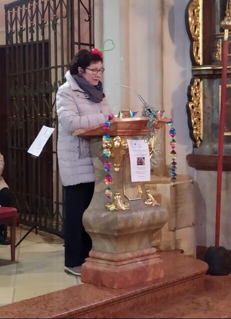 Die kfb-Leiterin Ilse Knoll hat tagelang alle Texte durchsucht nach passenden Stellen. Schließlich ist es uns gelungen, eine humorvolle Andacht zu gestalten. 37 Personen haben der Andacht gelauscht. Es war ein großer Erfolg und viel Spaß. Anschließend gab es einen gemütlichen Ausklang im Gasthaus Deixler.